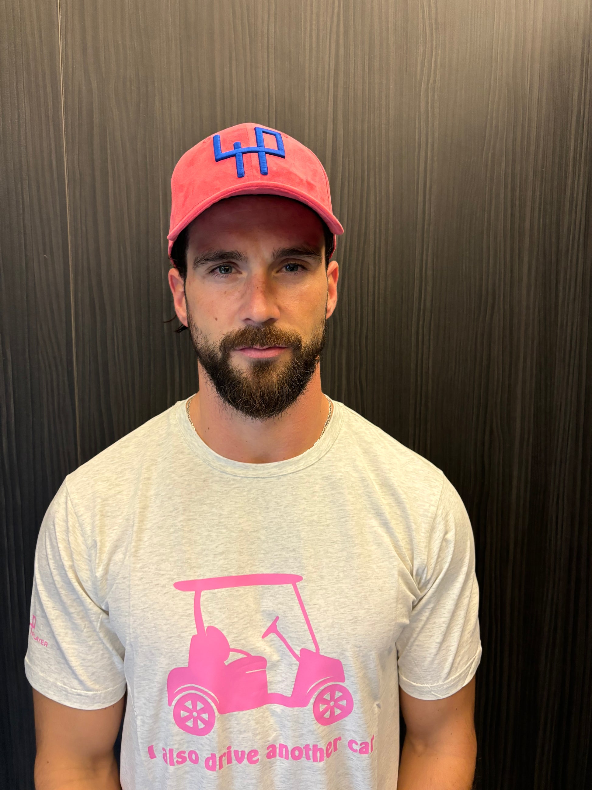 Drive Me!" Limited Edition Golf T-Shirt – 4P Collection | Grey with Pink Print
